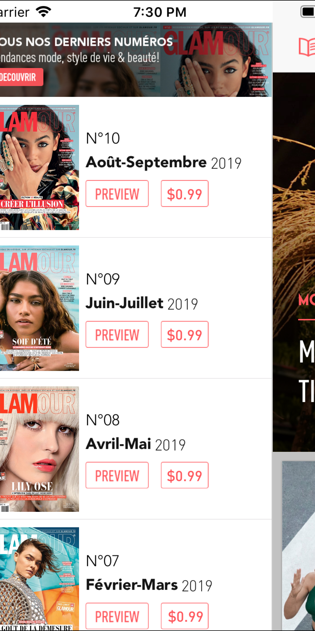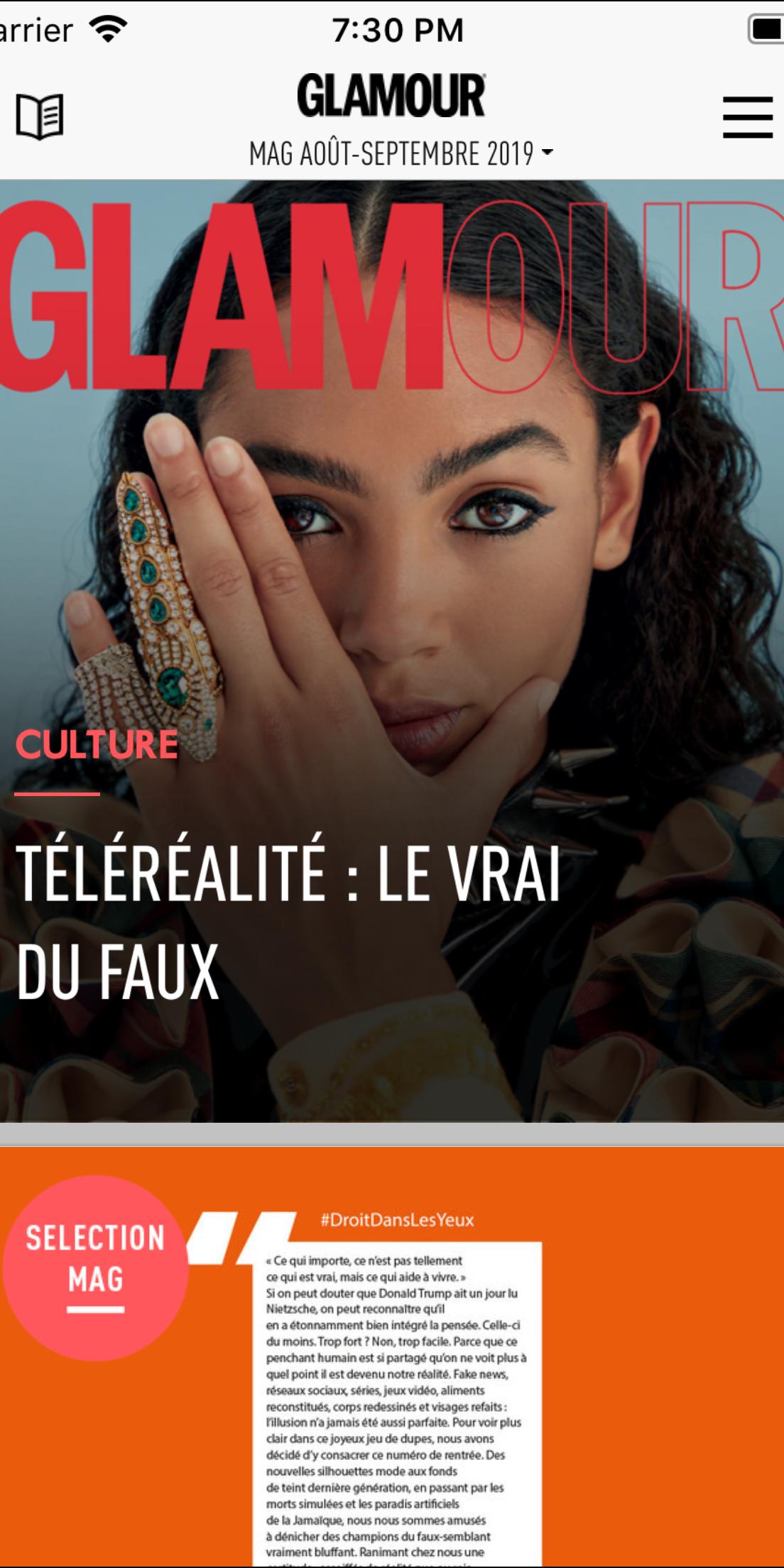Glamour Paris asked us to do a major re-design and re-thinking of their iPhone app. The prime idea was to bring forth the high fidelity visuals of Glamour along their latest news. Interconnecting the web content with a unique application interactions. This application was developed for both iOS and Android smartphones and tablets.